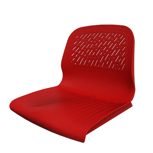 Asiento ergonómico de polipropileno copolímero de alta densidad con respaldo perforado para ventilación óptima. Diseñado para máxima durabilidad en instalaciones exteriores, resistente a UV, intemperie y actos vandálicos. Fijación mediante anclaje a grada de acero o hormigón.