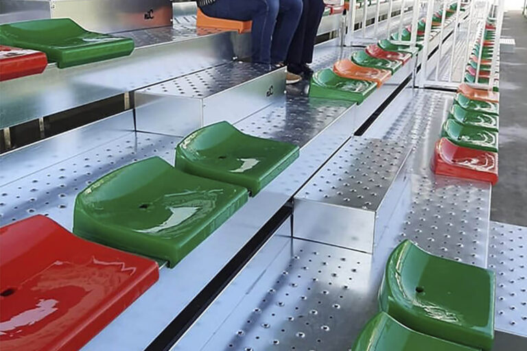 El HDPE (polietileno de alta densidad) es otra opción cada vez más presente, especialmente en bancos y gradas modulares. Su rigidez y resistencia a la intemperie lo hacen ideal para instalaciones en exterior con uso intensivo.